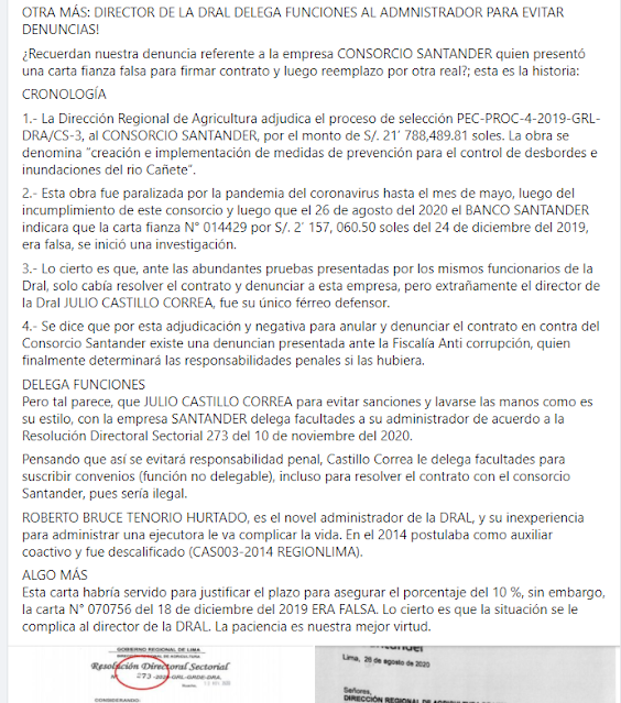 La misma que todos pedían que sea denunciada por esa falsedad y que el ex director de la Dral Julio Castillo nunca la quiso denunciar a pesar de existir opiniones legales en contra del consorcio Santander.